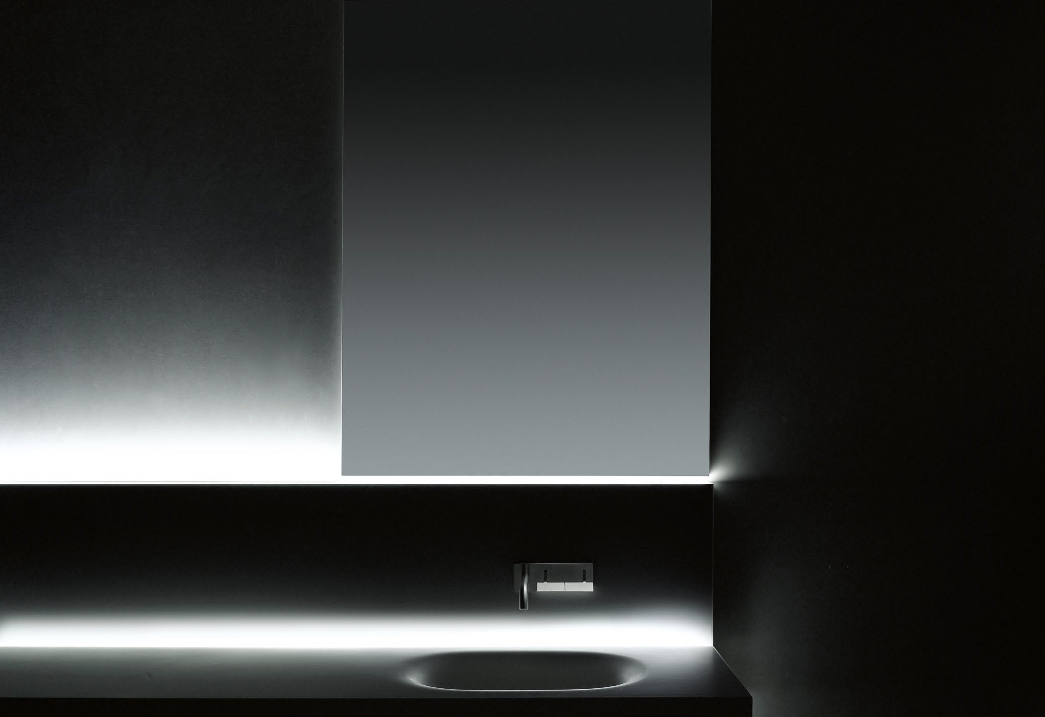 The back-splash is provided with an integrated LED bar, which illuminates the length of the top and the upper part.